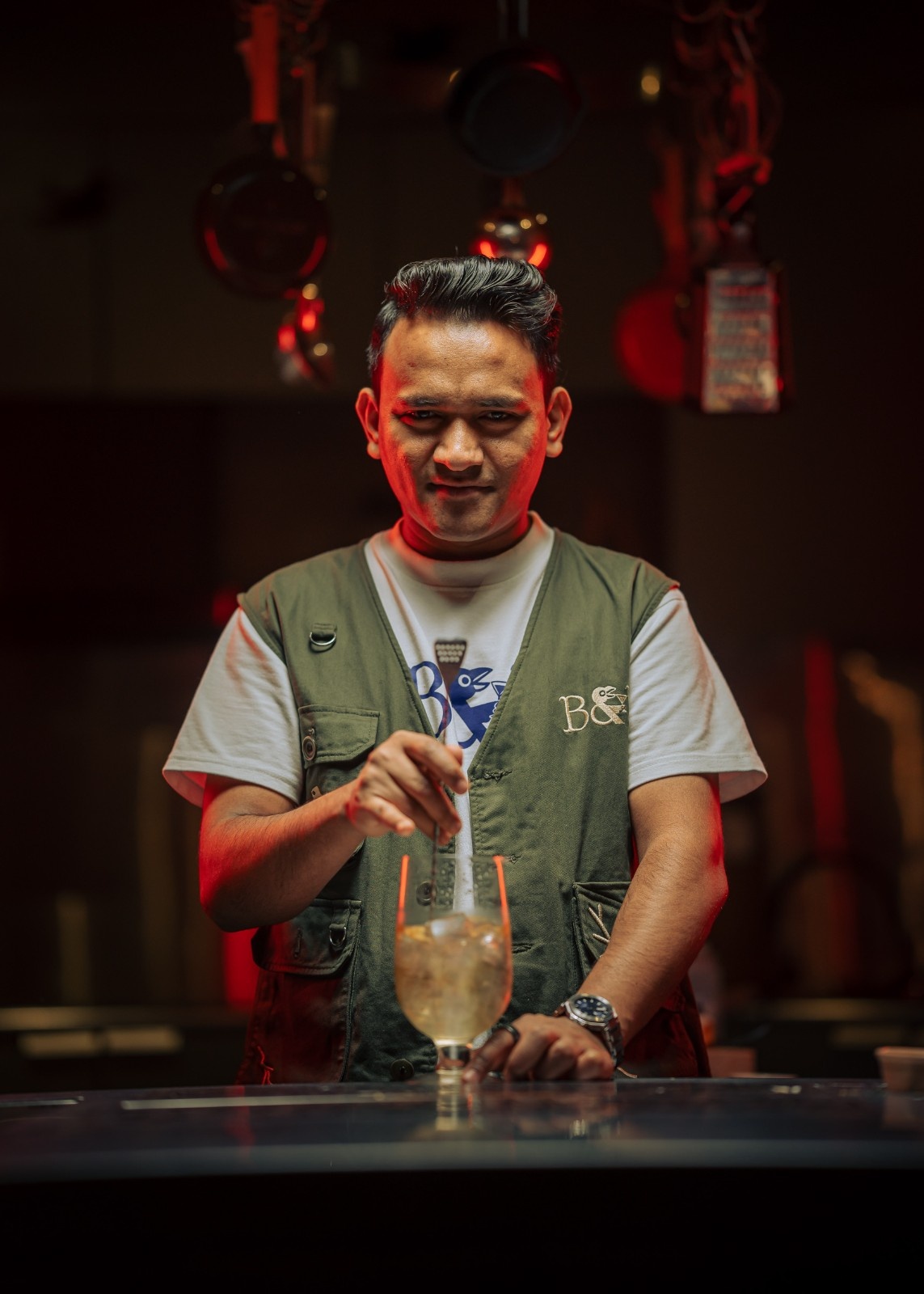 Some cocktails, like the Hot & Cold rasam drink and the Guntur Chilli creation went through multiple trials before finding the right balance between spice, savouriness, and drinkability. The menu is seasonal and fluid, evolving with the availability of ingredients. Each cocktail and dish is conceptualised together so that the flavours enhance each other rather than simply coexist.