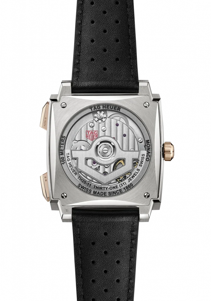 All three models are powered by Calibre TH20-11, a new manufacture calibre. The calibre is TAG Heuer’s new in-house manufacture movement, developed specifically for the new TAG Heuer Monaco Chronograph. ‘’TH20’’ refers to the family of in-house chronograph movements (where TH stands for TAG Heuer), while ‘’-11’’ refers to this specific version of the movement with crown on the left, a nod to the historic Calibre 11. The Calibre TH20-11 delivers an 80-hour power reserve. It features an integrated chronograph construction, with a column-wheel based mechanism, ensuring smooth and precise chronograph activation. All models are finished on a black calf skin perforated leather strap with fine brushed, polished titanium grade 5 folding clasp with double safety push-buttons.